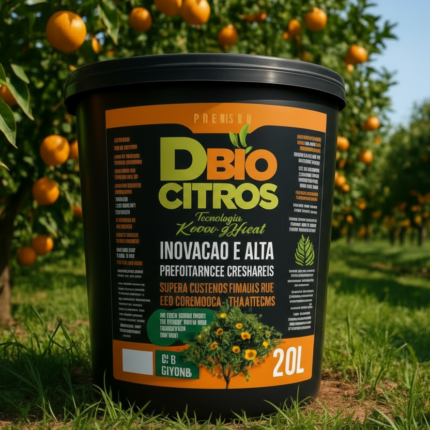 Bioestimulante específico para citros. Fortalece contra Greening (HLB), melhora floração e qualidade dos frutos.